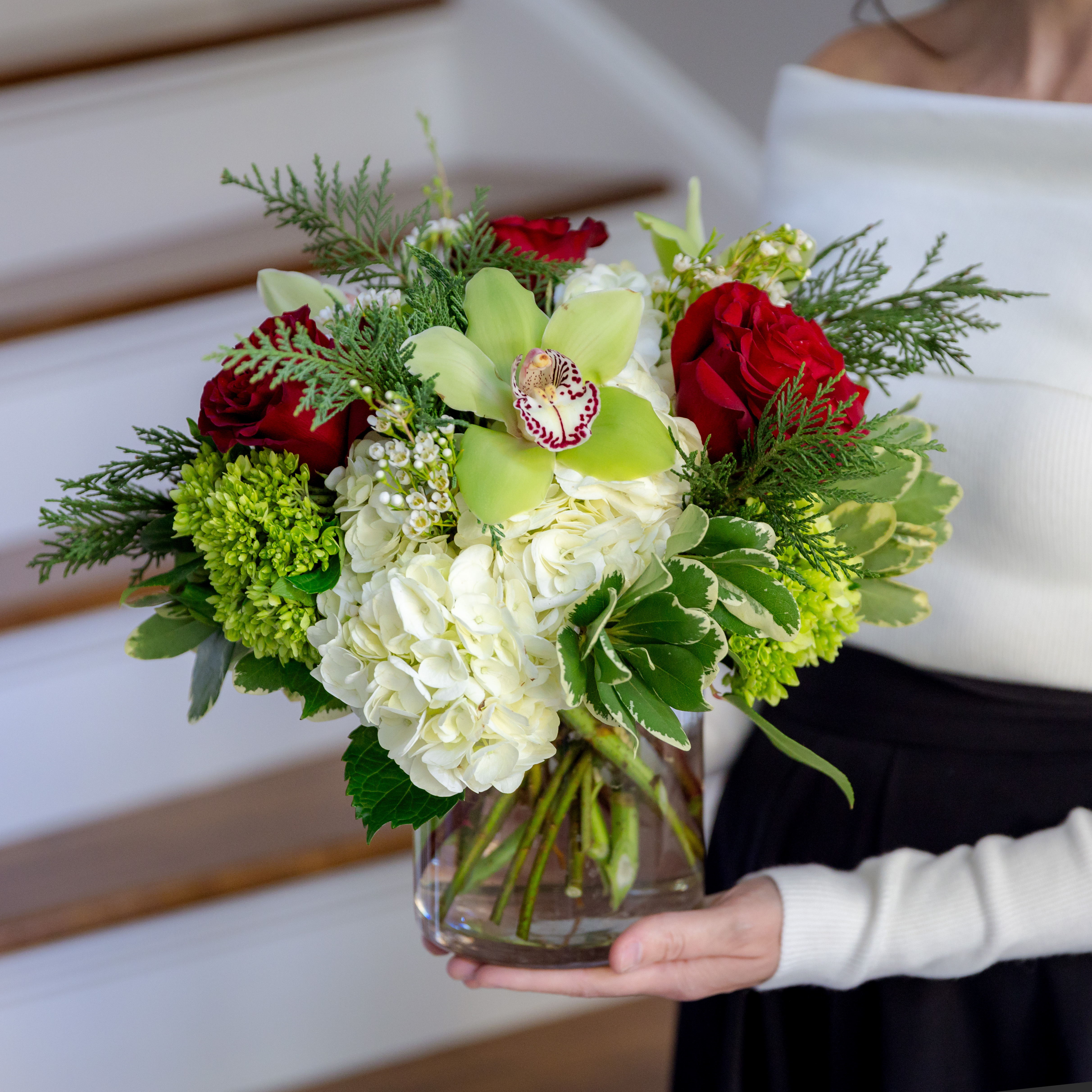 Celebrate the season with the Holiday Collection, featuring timeless designs in classic red, green, and white hues. Full of lush holiday greenery and rich textural elements, these arrangements range from elegant and refined to bold and textural, bringing festive warmth and sophistication to any space.